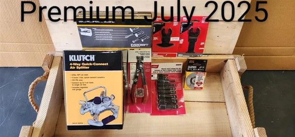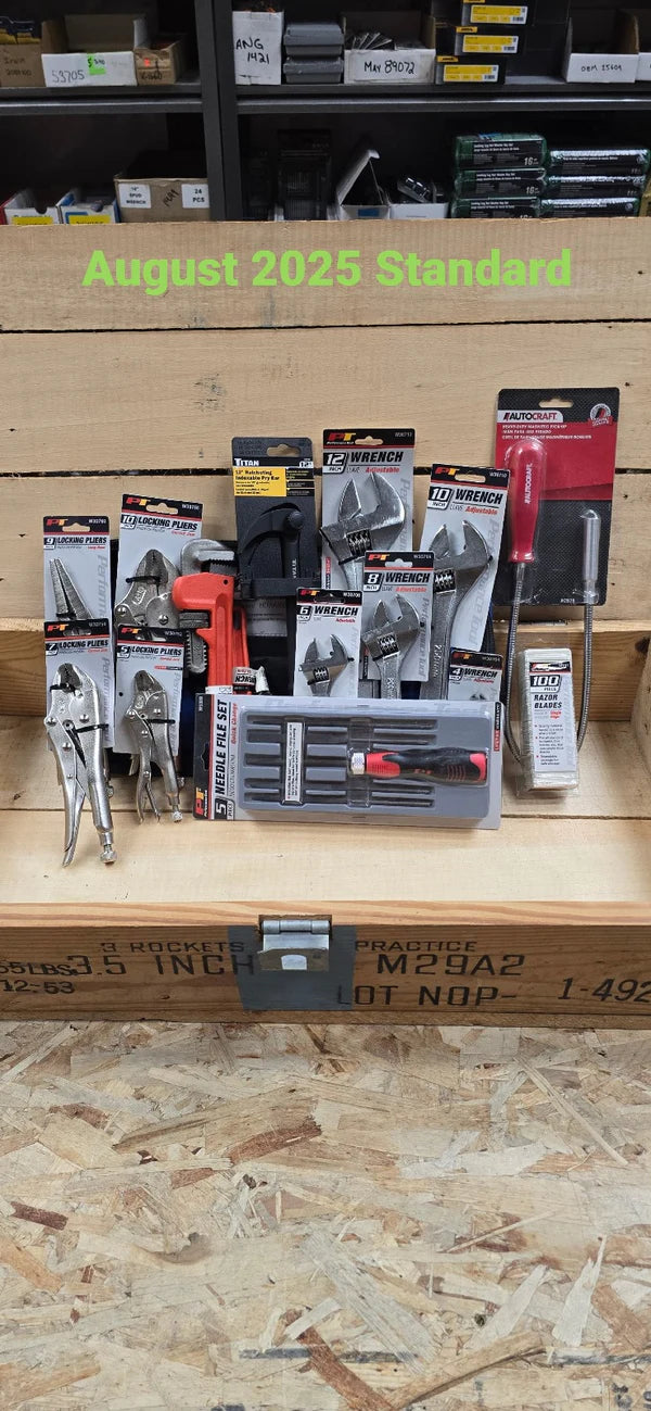 October's premium crate had over 18 items in it. To include an energizer flashlight that turns on through grounding in your hand. Grab the flashlight and it automatically turns on. We also had some American made Mayhew Chisels. A 92 tooth ratchet and more.